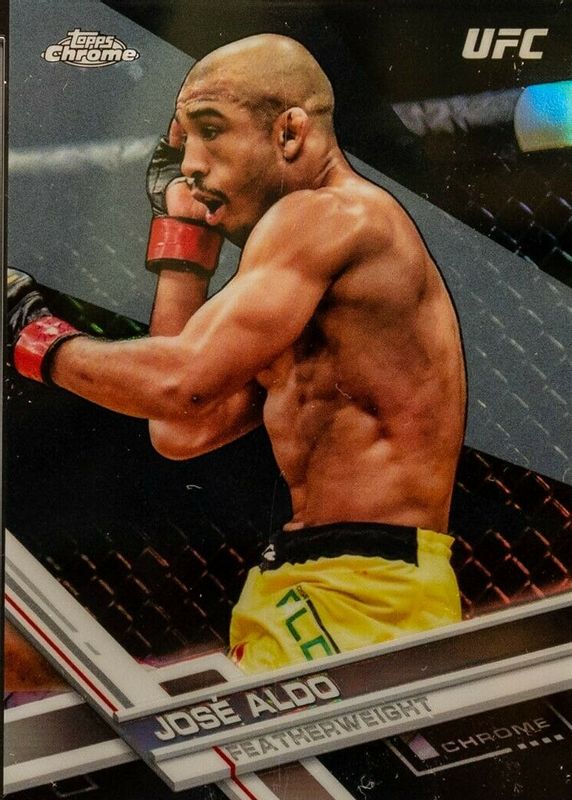 Jose Aldo's MMA cards are available in at least 24 sets. Jose Aldo's biggest 7-day price movers are 2017 Topps Chrome UFC #2 Black Refractor /10, 2021 Select UFC #144 Premier Level Black /1, and 2021 Prizm UFC #111 Neon Green /75.