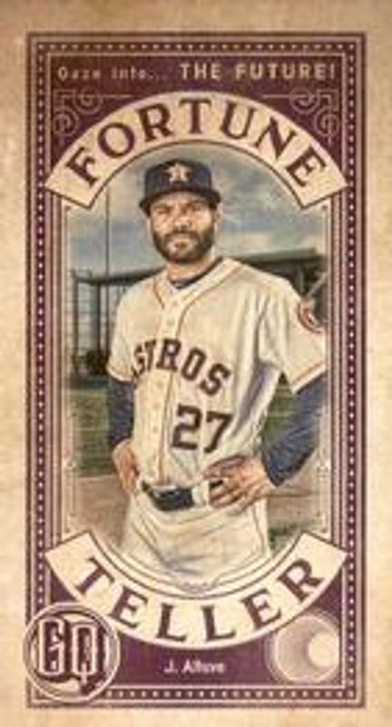 The Jose Altuve 2019 Topps Gypsy Queen #FTM-JA Fortune Teller Minis card is 1 of 42 Jose Altuve's card variations in the 2019 Topps Gypsy Queen set being tracked by Sports Card Investor, including #166 Base, #166d Base, #166c Base, #166b Base, and #166 Bazooka Back.