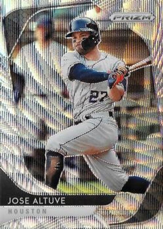 The Jose Altuve 2020 Prizm #221 Blue Wave /60 card is 1 of 119 Jose Altuve's card variations in the 2020 Prizm set being tracked by Sports Card Investor, including Base, Blue, Carolina Blue, Cosmic Haze, and Green.