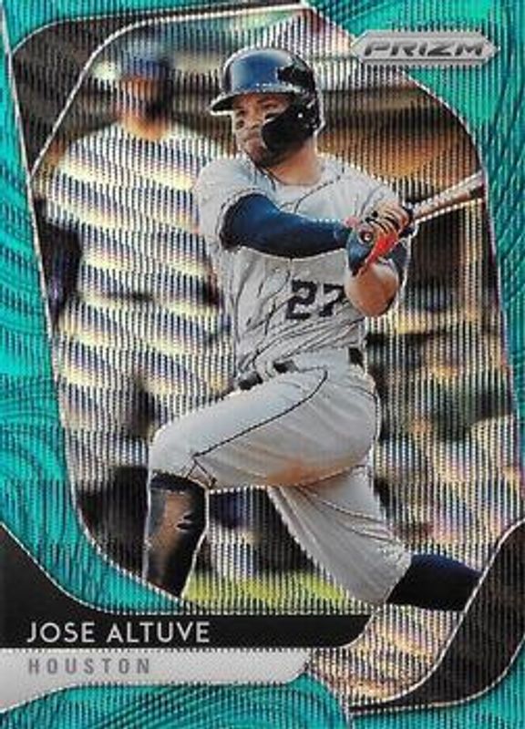 The Jose Altuve 2020 Prizm #221 Teal Wave card is 1 of 119 Jose Altuve's card variations in the 2020 Prizm set being tracked by Sports Card Investor, including Base, Blue, Carolina Blue, Cosmic Haze, and Green.