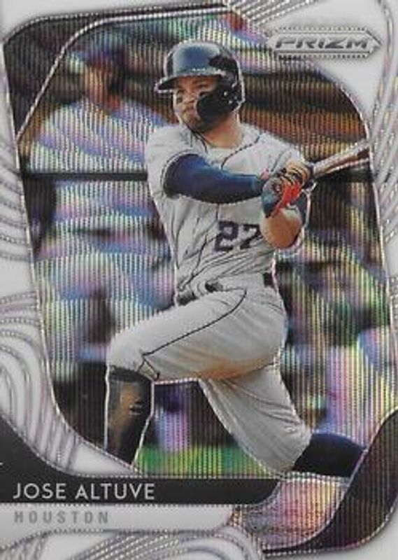 The Jose Altuve 2020 Prizm #221 White Wave card is 1 of 119 Jose Altuve's card variations in the 2020 Prizm set being tracked by Sports Card Investor, including Base, Blue, Carolina Blue, Cosmic Haze, and Green.