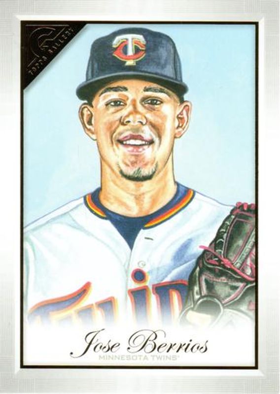 The Jose Berrios 2019 Topps Gallery #OBT-JBE Oversized Box Toppers card is 1 of 19 Jose Berrios' card variations in the 2019 Topps Gallery set being tracked by Sports Card Investor, including Base, Artist Proof, Wood, Private Issue /250, and Green /99.