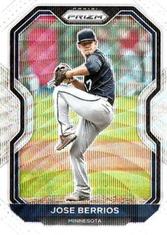 The Jose Berrios 2021 Prizm #44 White Wave card is 1 of 43 Jose Berrios' card variations in the 2021 Prizm set being tracked by Sports Card Investor, including Base, Blue, Blue Velocity, Carolina Blue, and Cosmic Haze.