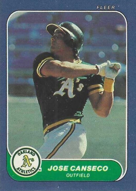 This card is 1 of 5 Jose Canseco's card variations in the 1986 Fleer set being tracked by Sports Card Investor, including Major League Prospects (w/E. Plunk), Baseball's Best, League Leaders, and Star Stickers.