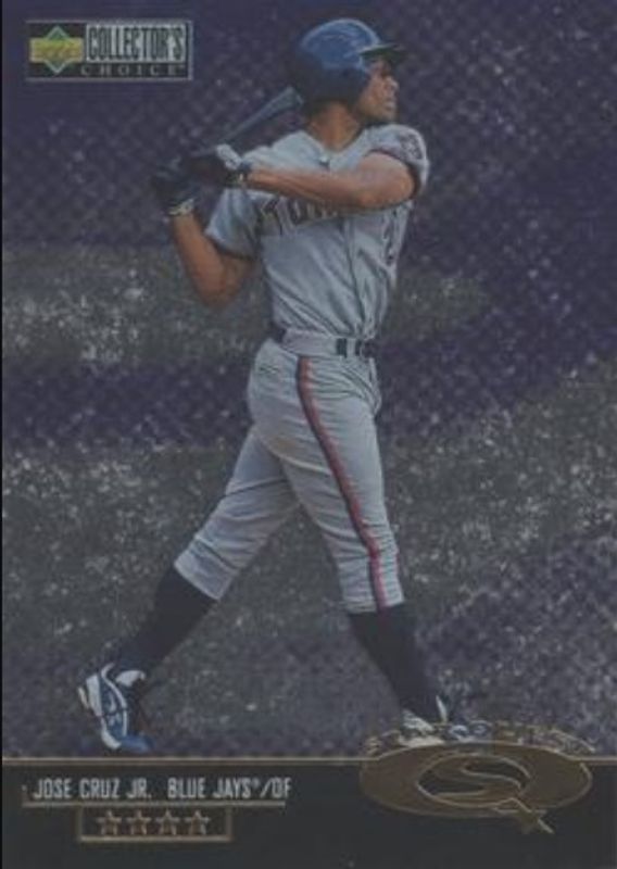 The Jose Cruz Jr. 1998 Upper Deck Collector's Choice #SQ81 StarQuest card is 1 of 19 Jose Cruz Jr.'s card variations in the 1998 Upper Deck Collector's Choice set being tracked by Sports Card Investor, including #7 Base, #7b Base, #7 Cover Glory 5x7, #30 Mini Bobbing Heads, and #7 Series One Blaster Jumbo 5x7.