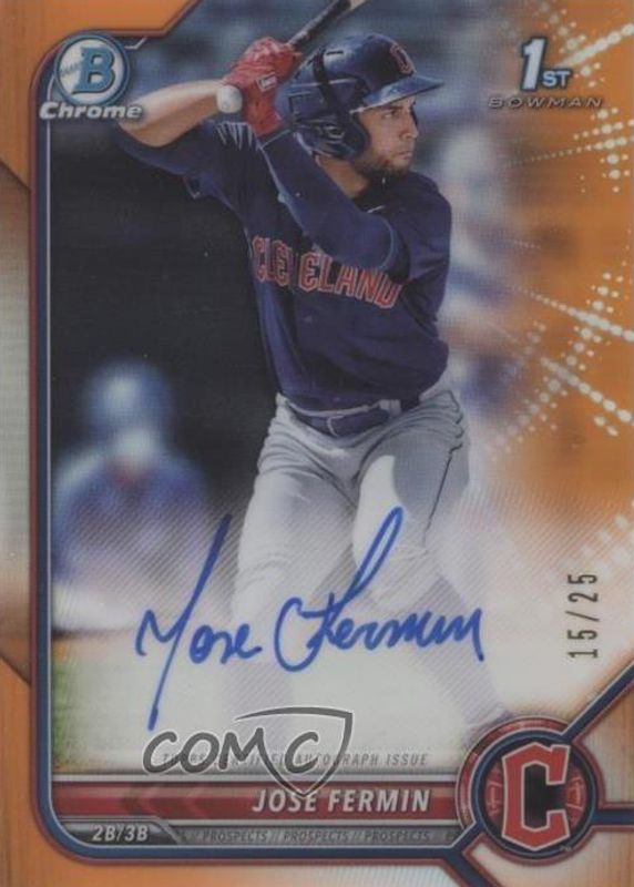 Jose Fermin 2022 Bowman #CPA-JF Chrome Prospect Auto - Orange Refractor /25 (1st) RAW Price Guide