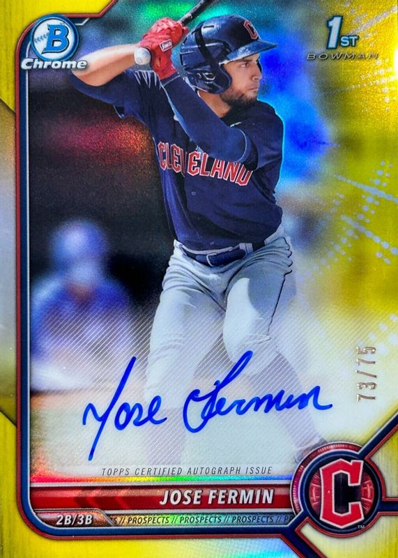 Jose Fermin 2022 Bowman #CPA-JF Chrome Prospect Auto - Yellow Refractor /75 (1st) RAW Price Guide