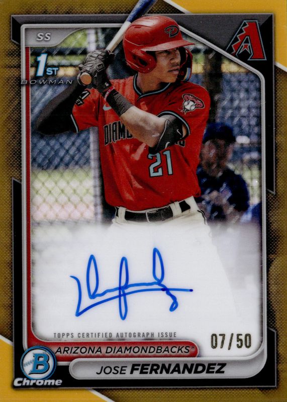 2024 Bowman Chrome Jose Fernandez 1st True Gold Auto 16/50 Arizona Diamondbacks