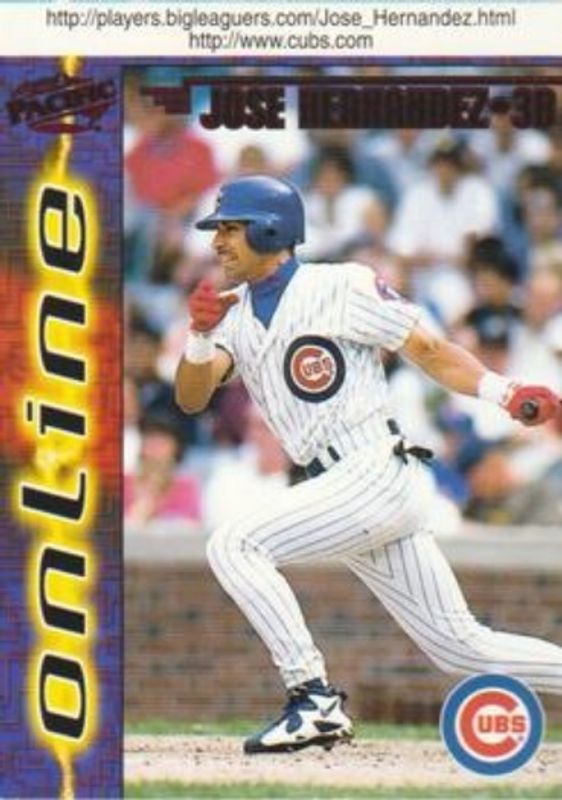 The Jose Hernandez 1998 Pacific Online #142 Red card is 1 of 4 Jose Hernandez's card variations in the 1998 Pacific Online set being tracked by Sports Card Investor, including Base, Base Winners, and Web Cards.