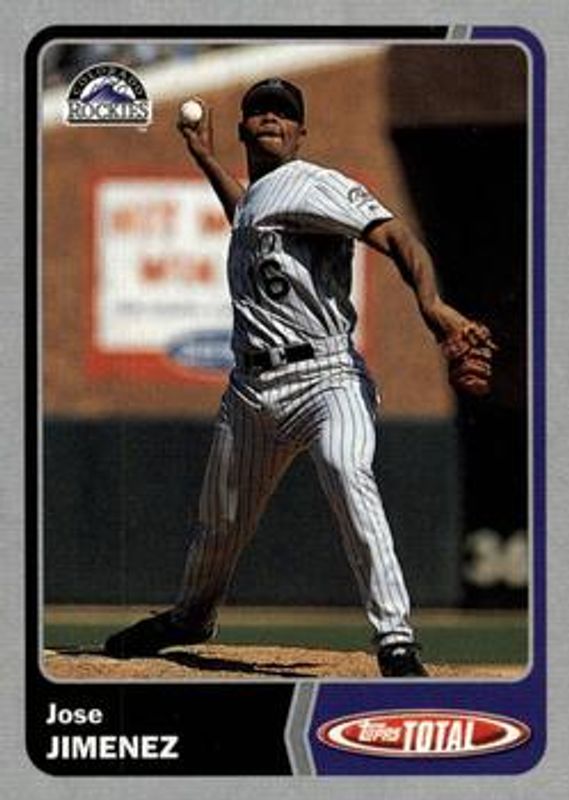 The Jose Jimenez 2003 Topps Total #367 Silver card is 1 of 2 Jose Jimenez's card variations in the 2003 Topps Total set being tracked by Sports Card Investor, including Base.