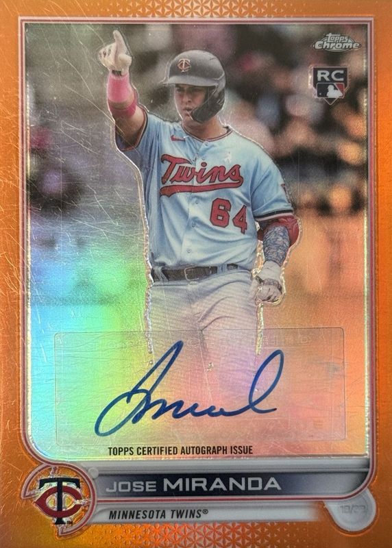 Auctions Ending Soon for Jose Miranda 2022 Topps Chrome Update #AC-JMI Autographs - Orange Refractor /25 Rookie RAW
