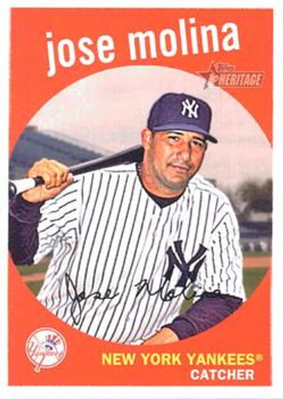 The Jose Molina 2008 Topps Heritage #523 Base card is 1 of 2 Jose Molina's card variations in the 2008 Topps Heritage set being tracked by Sports Card Investor, including Base.