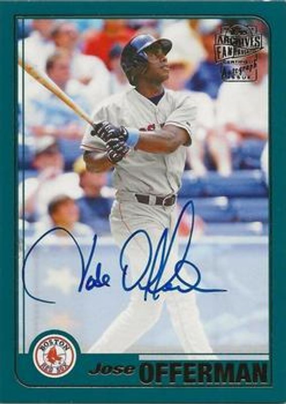 The Jose Offerman 2020 Topps Archives #FFA-JO Fan Favorites Autographs card is 1 of 5 Jose Offerman's card variations in the 2020 Topps Archives set being tracked by Sports Card Investor, including Fan Favorites Autographs - Purple /150, Fan Favorites Autographs - Silver /99, Fan Favorites Autographs - Blue /25, and Fan Favorites Autographs - Gold Foil /1.