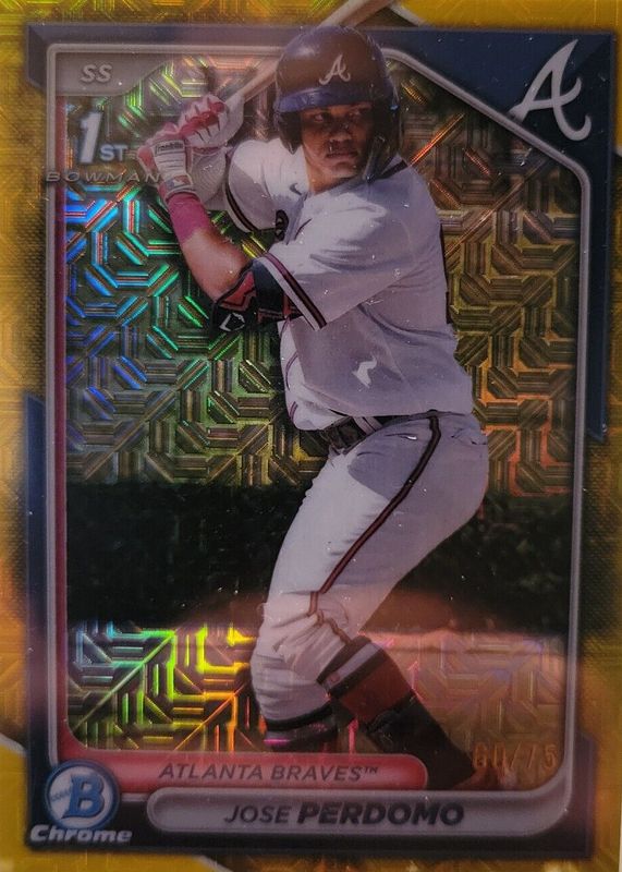 2024 BOWMAN CHROME JOSE PERDOMO 1ST ROOKIE YELLOW MOJO REFRACTOR SP #/75 BRAVES