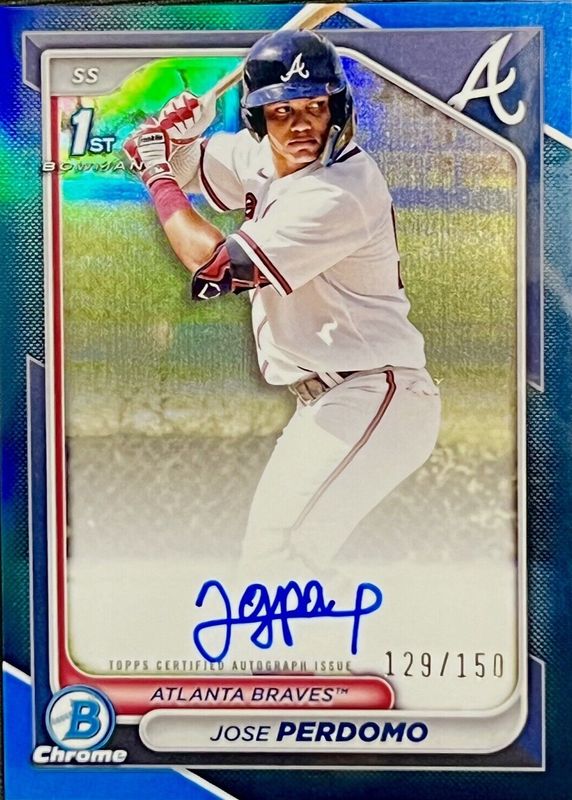 2024 Bowman Chrome Jose Perdomo Auto Blue Refractor 1st Prospect #140/150 Braves