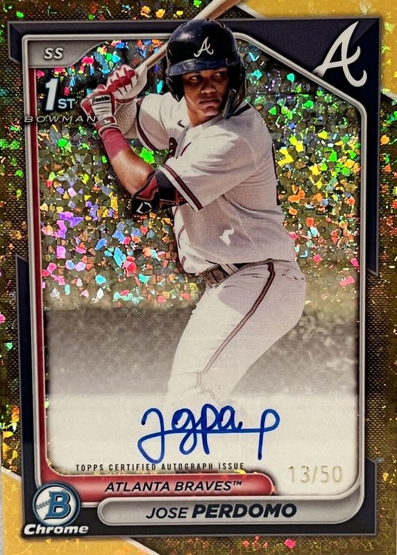 Jose Perdomo 2024 1st Bowman Chrome Gold Mini Diamonds Auto #6/50 RC Braves