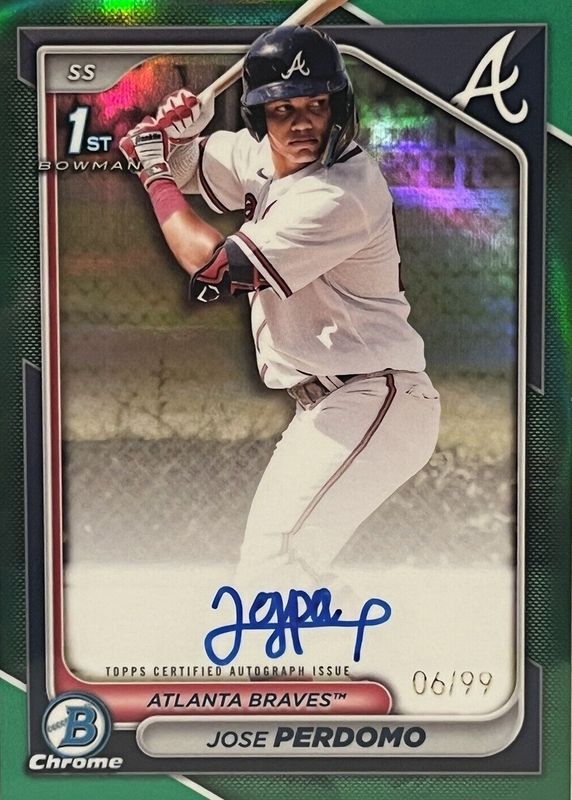 2024 Bowman Chrome Jose Perdomo Auto Green Refractor 1st #48/99 Braves