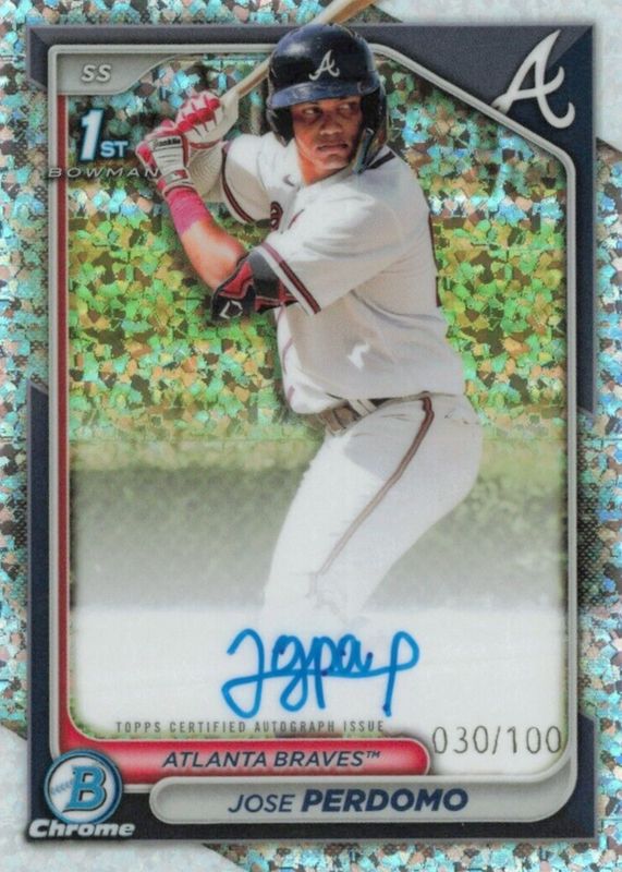 Jose Perdomo 2024 Bowman Chrome Auto Mini Diamonds Refractor SP 1st /100 Braves