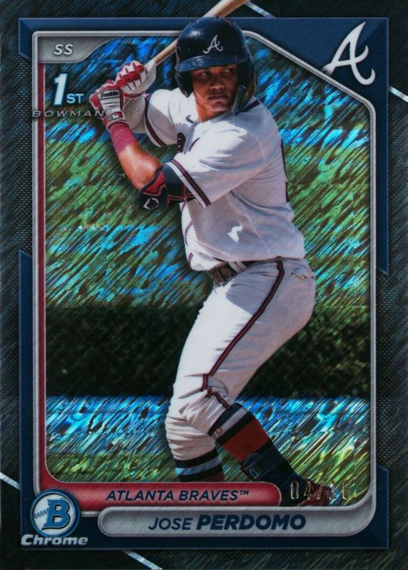 This card is 1 of 52 Jose Perdomo's card variations in the 2024 Bowman Chrome set being tracked by Sports Card Investor, including Prospects (1st), Prospects - Etched in Glass Variation (1st), Prospects - Shimmer Refractor (1st), Prospects - Refractor /499 (1st), and Prospects - Speckle Refractor /299 (1st).