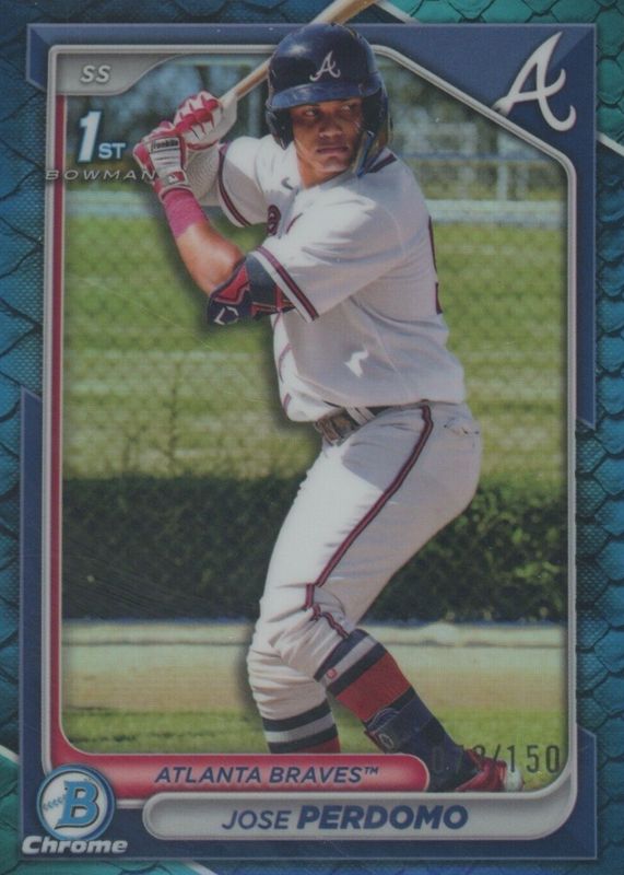 2024 Bowman Chrome Jose Perdomo 1st Blue Reptilian Refractor /150 BCP-220 Braves
