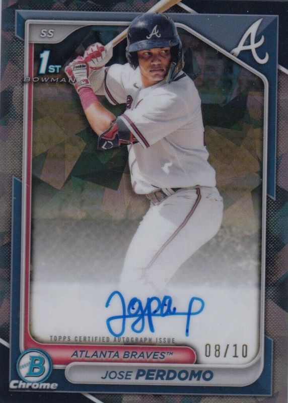 This card is 1 of 28 Jose Perdomo's card variations in the 2024 Bowman Chrome Sapphire Edition set being tracked by Sports Card Investor, including Prospects (1st), Prospects Image Variation, Prospects - Yellow /75 (1st), Prospects - Gold /50 (1st), and Prospects Image Variation - Gold /50.