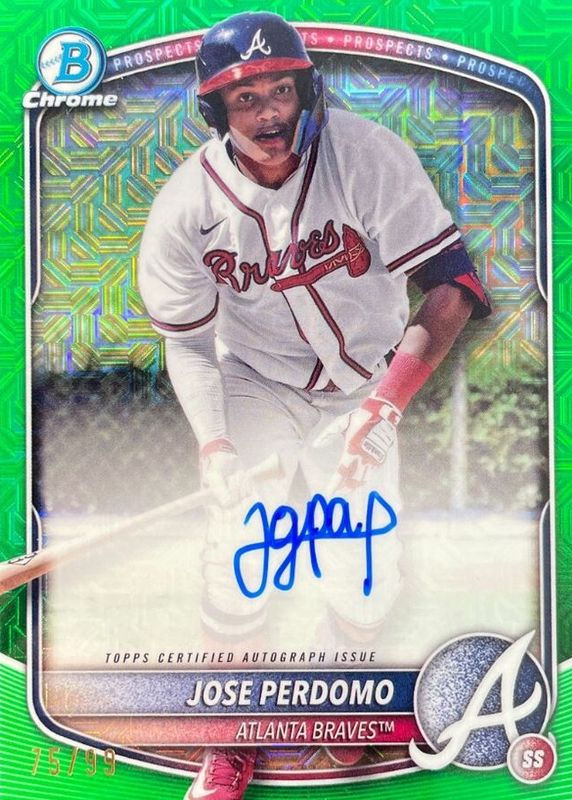 Best Prices Available For Sale of Jose Perdomo 2025 Bowman Mega Box #BMA-JP Chrome Prospect Auto - Green Refractor /99