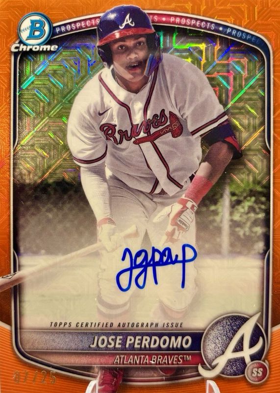 Best Prices Available For Sale of Jose Perdomo 2025 Bowman Mega Box #BMA-JP Chrome Prospect Auto - Orange Refractor /25