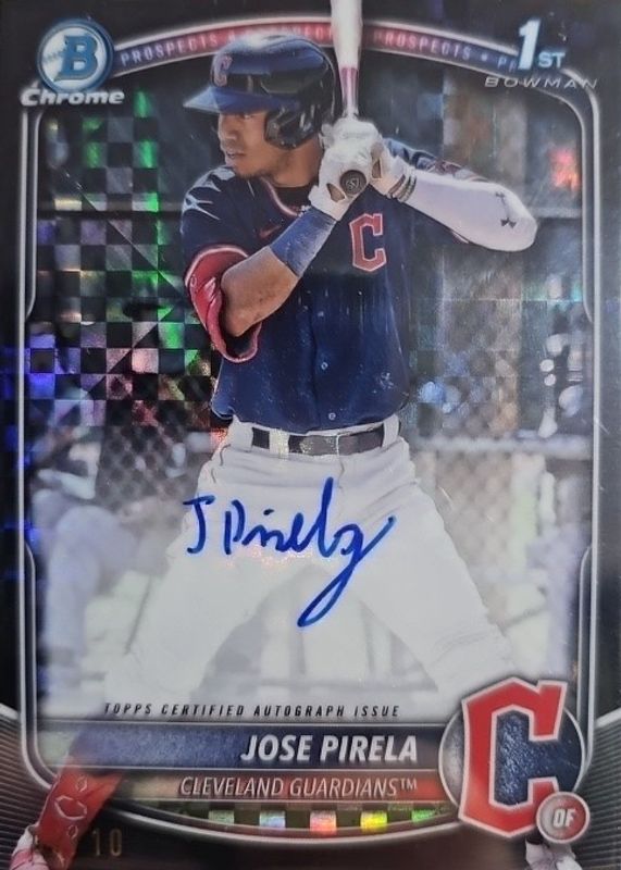 Jose Pirela 2025 Bowman #CPA-JP Chrome Prospect Auto - Black X-Fractor /10 (1st) RAW Price Guide
