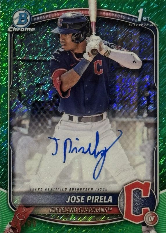 2025 Bowman Chrome Jose Pirela 1st Green Shimmer Auto /99 Guardians #CPA-JP