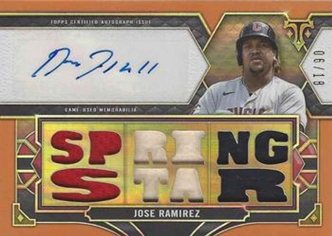Jose Ramirez 2022 Topps Triple Threads #TTAR-JRA1 Autographs Relic - Amber /18 RAW Price Guide