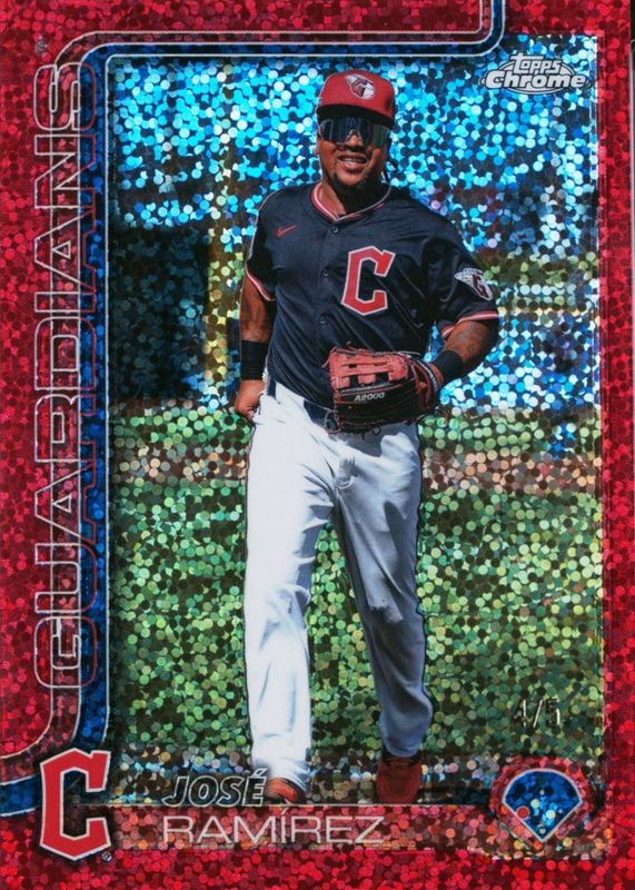 Recent Sales of Jose Ramirez 2025 Topps Chrome #12 Image Variation - Red Speckle Refractor /5 PSA 8