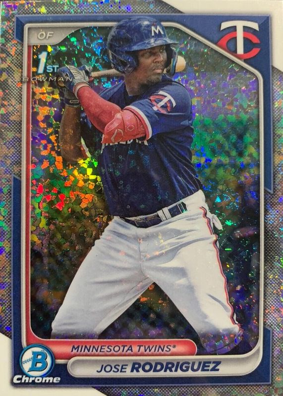 This card is 1 of 31 Jose Rodriguez (Twins)'s card variations in the 2024 Bowman set being tracked by Sports Card Investor, including Chrome Prospects (1st), Chrome Prospects - Lunar Glow Refractor (1st), Chrome Prospects - Pearl Refractor (1st), Chrome Prospects - Refractor /499 (1st), and Chrome Prospects - Lava Refractor /399 (1st).