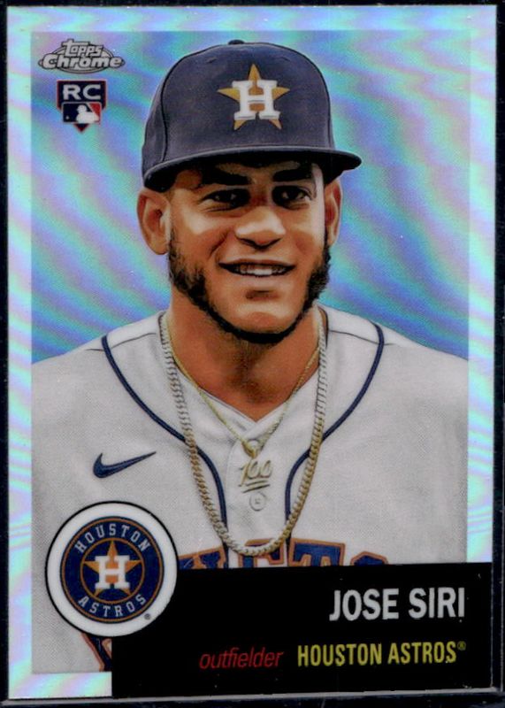 The Jose Siri 2022 Topps Chrome Platinum Anniversary #124 Refractor Rookie card is 1 of 34 Jose Siri's card variations in the 2022 Topps Chrome Platinum Anniversary set being tracked by Sports Card Investor, including Base, Black & White Mini Diamond Refractor, Blue Prism Refractor, Gold Prism Refractor, and Prism Refractor.