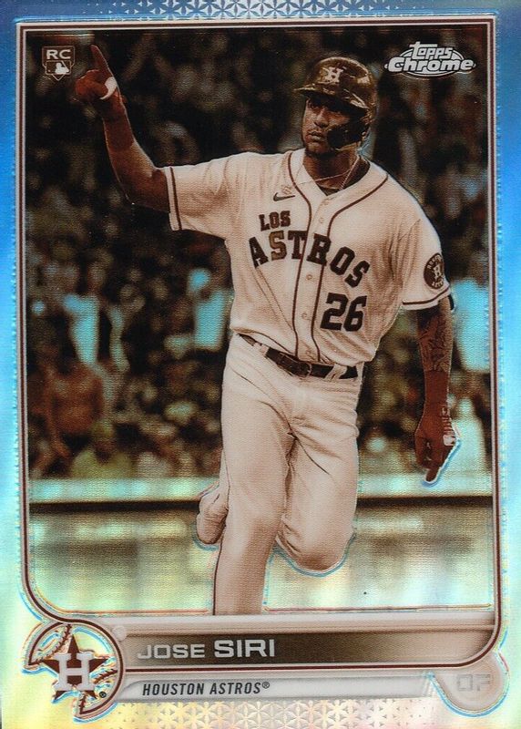 This card is 1 of 41 Jose Siri's card variations in the 2022 Topps Chrome set being tracked by Sports Card Investor, including Base, Black & White Mini-Diamond Refractor, Negative Refractor, Pink Refractor, and Prism Refractor.