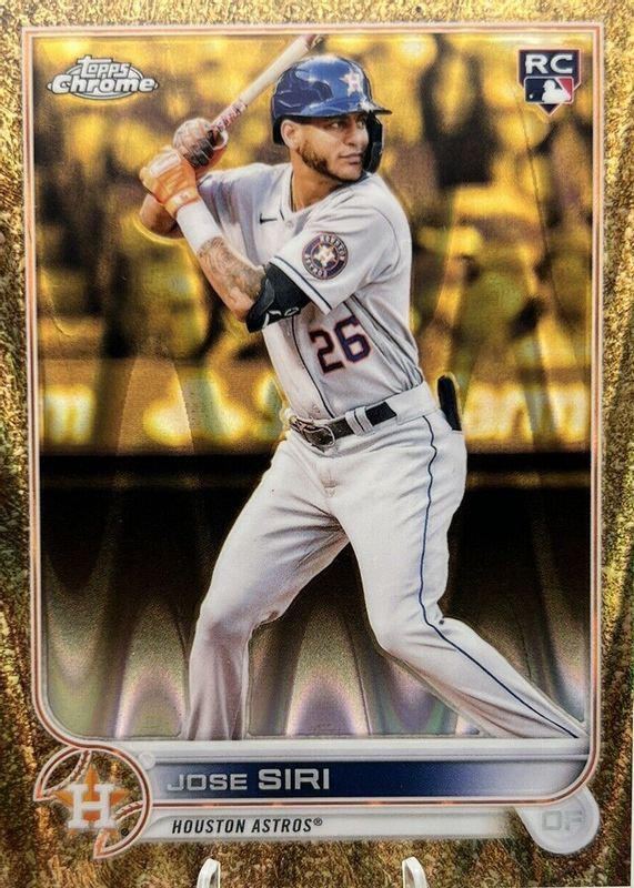 This card is 1 of 5 Jose Siri's card variations in the 2022 Topps Gilded Collection set being tracked by Sports Card Investor, including Base /99, Mini-Diamond Gold Etch Refractor /50, Lava Gold Etch Refractor /10, and Superfractor /1.