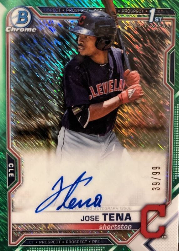 Jose Tena 2021 Bowman #CPA-JT Chrome Prospect Auto - Green Shimmer Refractor /99 (1st) RAW Price Guide