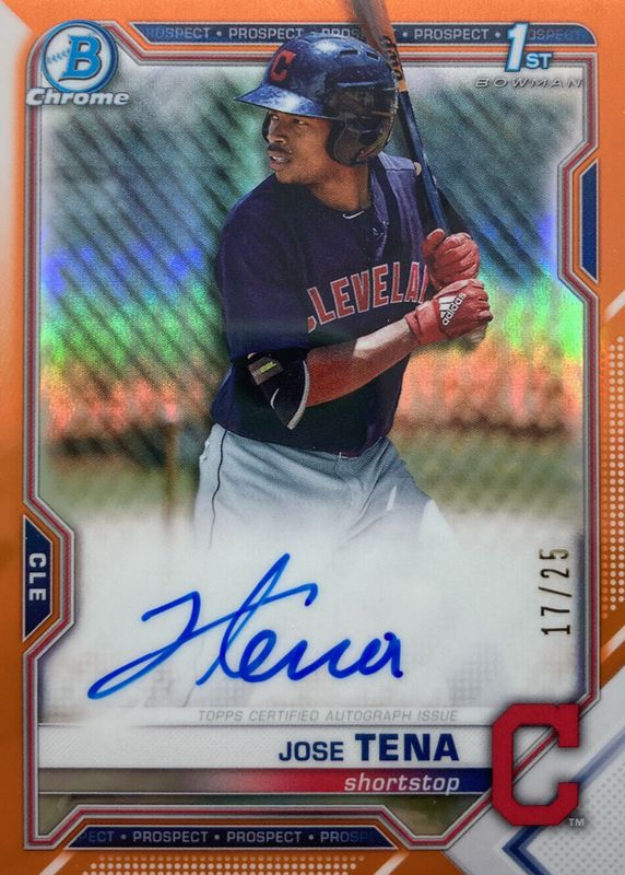 Best Prices Available For Sale of Jose Tena 2021 Bowman #CPA-JT Chrome Prospect Auto - Orange Refractor /25 (1st)