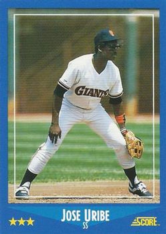 The Jose Uribe 1988 Score #165 Base card is 1 of 2 Jose Uribe's card variations in the 1988 Score set being tracked by Sports Card Investor, including Glossy.