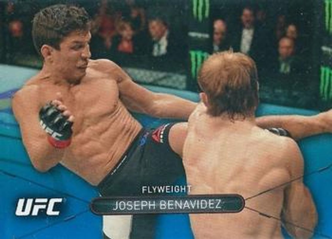 The Joseph Benavidez 2016 Topps High Impact UFC #28 Blue card is 1 of 5 Joseph Benavidez's card variations in the 2016 Topps High Impact UFC set being tracked by Sports Card Investor, including Base, Red /8, Gold /1, and Autographs.