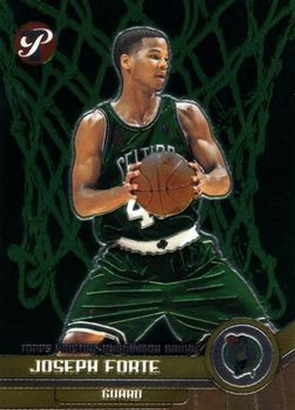 The Joseph Forte 2001 Topps Pristine #100 Base Rookie card is 1 of 7 Joseph Forte's card variations in the 2001 Topps Pristine set being tracked by Sports Card Investor, including #101 Base, #99 Base, #100 Refractor /50, #101 Refractor /50, and #99 Refractor /50.