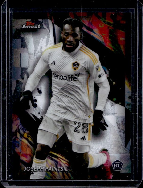 The Joseph Paintsil 2024 Topps Finest MLS #128 Base Rookie card is 1 of 63 Joseph Paintsil's card variations in the 2024 Topps Finest MLS set being tracked by Sports Card Investor, including #28 Base, #294 Base, #128 Aqua Refractor, #28 Aqua Refractor, and #294 Aqua Refractor.
