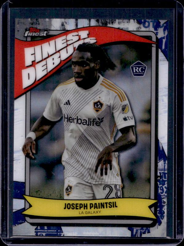 The Joseph Paintsil 2024 Topps Finest MLS #FD-10 Finest Debuts Rookie card is 1 of 63 Joseph Paintsil's card variations in the 2024 Topps Finest MLS set being tracked by Sports Card Investor, including #128 Base, #28 Base, #294 Base, #128 Aqua Refractor, and #28 Aqua Refractor.