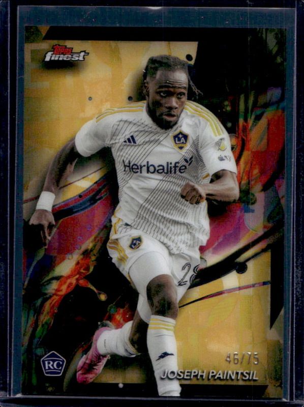 The Joseph Paintsil 2024 Topps Finest MLS #28 Gold Refractor Rookie card is 1 of 63 Joseph Paintsil's card variations in the 2024 Topps Finest MLS set being tracked by Sports Card Investor, including #128 Base, #28 Base, #294 Base, #128 Aqua Refractor, and #28 Aqua Refractor.