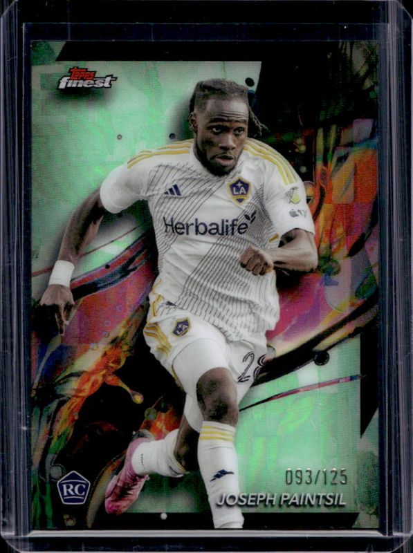 The Joseph Paintsil 2024 Topps Finest MLS #28 Neon Green Refractor Rookie card is 1 of 63 Joseph Paintsil's card variations in the 2024 Topps Finest MLS set being tracked by Sports Card Investor, including #128 Base, #28 Base, #294 Base, #128 Aqua Refractor, and #28 Aqua Refractor.