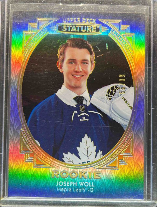 The Joseph Woll 2020 Upper Deck Stature #144 Portrait /99 Rookie card is 1 of 8 Joseph Woll's card variations in the 2020 Upper Deck Stature set being tracked by Sports Card Investor, including Base /399, Green /175, Red /85, Blue /45, and Portrait Red /25.