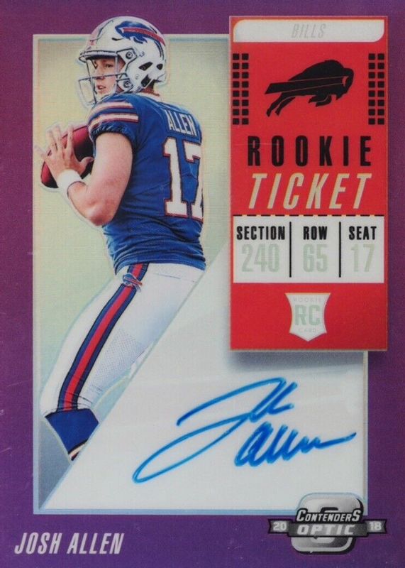 Best Prices Available For Sale of Josh Allen 2018 Contenders Optic #105 Rookie Ticket Auto - Purple (/49)