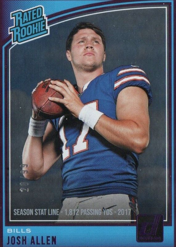 The Josh Allen 2018 Donruss #304 Season Stat Line (/99) Rookie card in Raw condition has not changed in price in the last 30 days and was last sold for $250.00 .