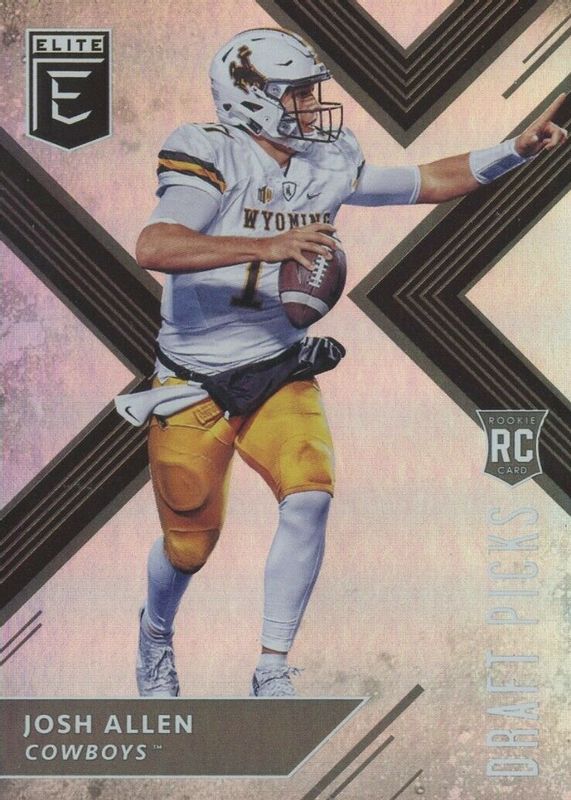 The Josh Allen 2018 Elite Draft Picks #103 Variation (White Jersey) Rookie card in Raw condition has moved down -$4.61 (-28.6%) in the last 30 days and was last sold for $11.50 .