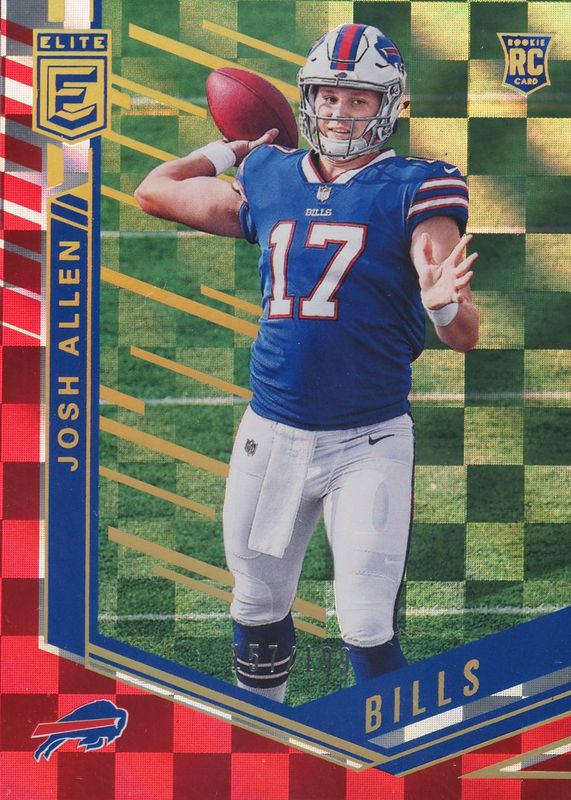 The Josh Allen 2018 Elite #154 Red /199 Rookie card in Raw condition has moved down -$5.95 (-4.7%) in the last 30 days and was last sold for $121.05 .