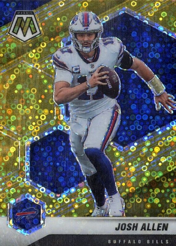 This card is 1 of 30 Josh Allen's card variations in the 2021 Mosaic set being tracked by Sports Card Investor, including Silver, Blue /99, Choice Fusion Red & Yellow /80, No Huddle Blue /75, and Choice Peacock /(SSP).